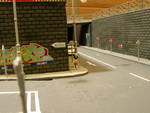 A felüljárók elkészítése után befejeztem az aluljáró első részét és az aluljáróba vezető lejáró építését. A recept már megszokott: aszfalt festék, táblák, útburkolati jelek, egy kis graffiti, kandeláberek, korlátok, telefonfülke, járművek és emberek...