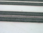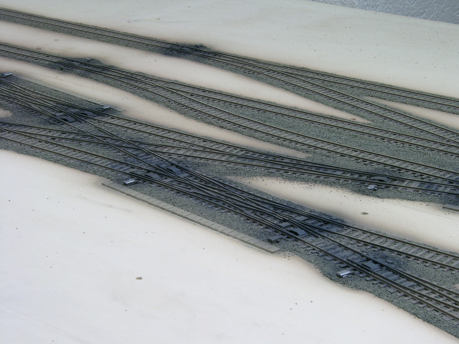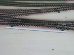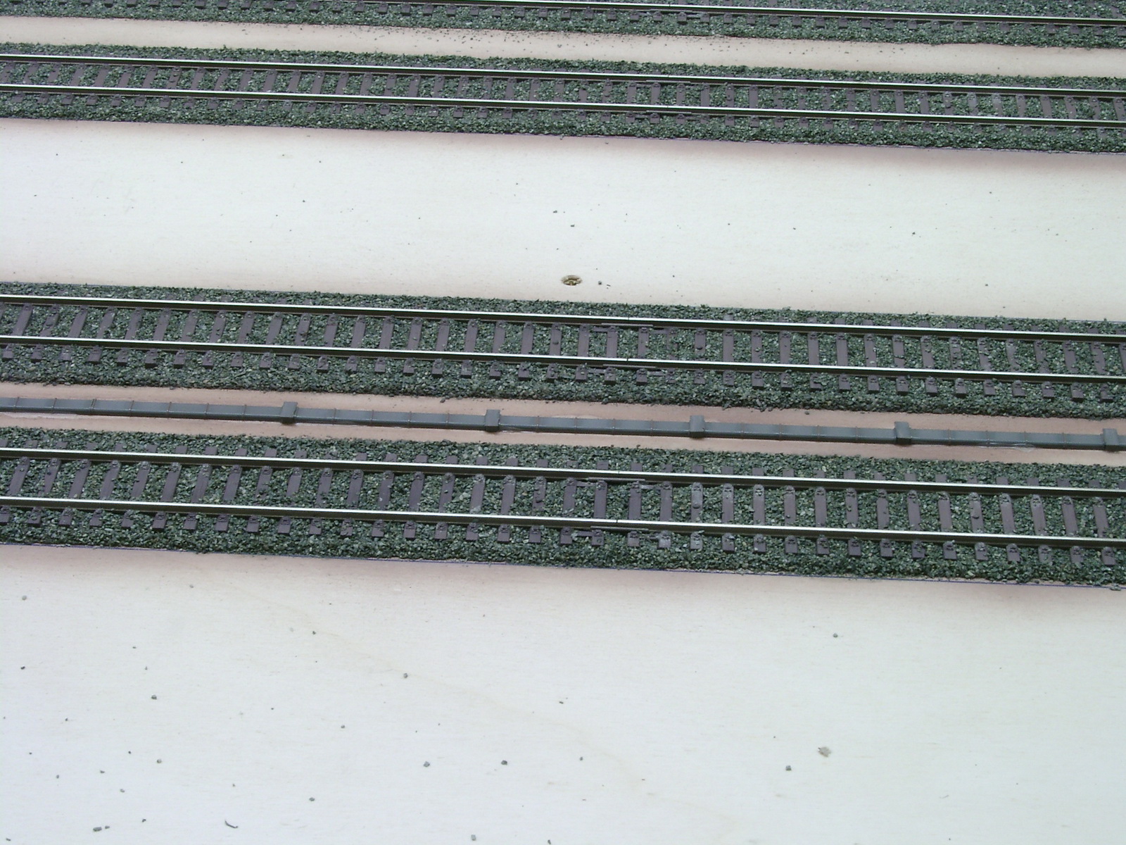 Helyére került minden szem, lényeges, hogy a sínszál oldalán ne ragadjon fel kavics, ezek könnyen elemelik a kerekeket a sínkoronától és instabil lesz az áramfelvétel. Másrészt meg nem szép és zörög, csattog minden kerék rajtuk. Még ragasztás előtt egy leselejtezett kocsit párszor végiggurítok a területen, ennek a kerekei lelökdösik a feltapadt kavicsokat vagy jelzik, hol van beékelődve egy egy "lázadó" elem.