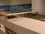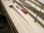2017.01.31. Sok minden nem maradt meg egyben a régi martrain terepasztalról, 3 asztalrész menekült meg a teljes bontástól. Abban nem voltam biztos, hogy ezeket mind be tudom építeni, reméltem csak, hogy sikerül mindegyiket normálisan beleintegrálni az új környezetbe. Ilyen a régi vontatási telep környezete, közepén a fordítókoronggal és a fölötte elterülő felsővezeték-pókhálóval. Ezt sikerült a régi vázszerkezetről leemelni, körbevágni viszont csak dekopír fűrésszel tudtam, az pedig nem lett túl egyenes. Így más választásom nem maradt, készítettem neki egy fogadó keretet, így szép egyenes széle lett ennek az elemnek és sikerült eltűntetni a kacska vágás nyomait is.