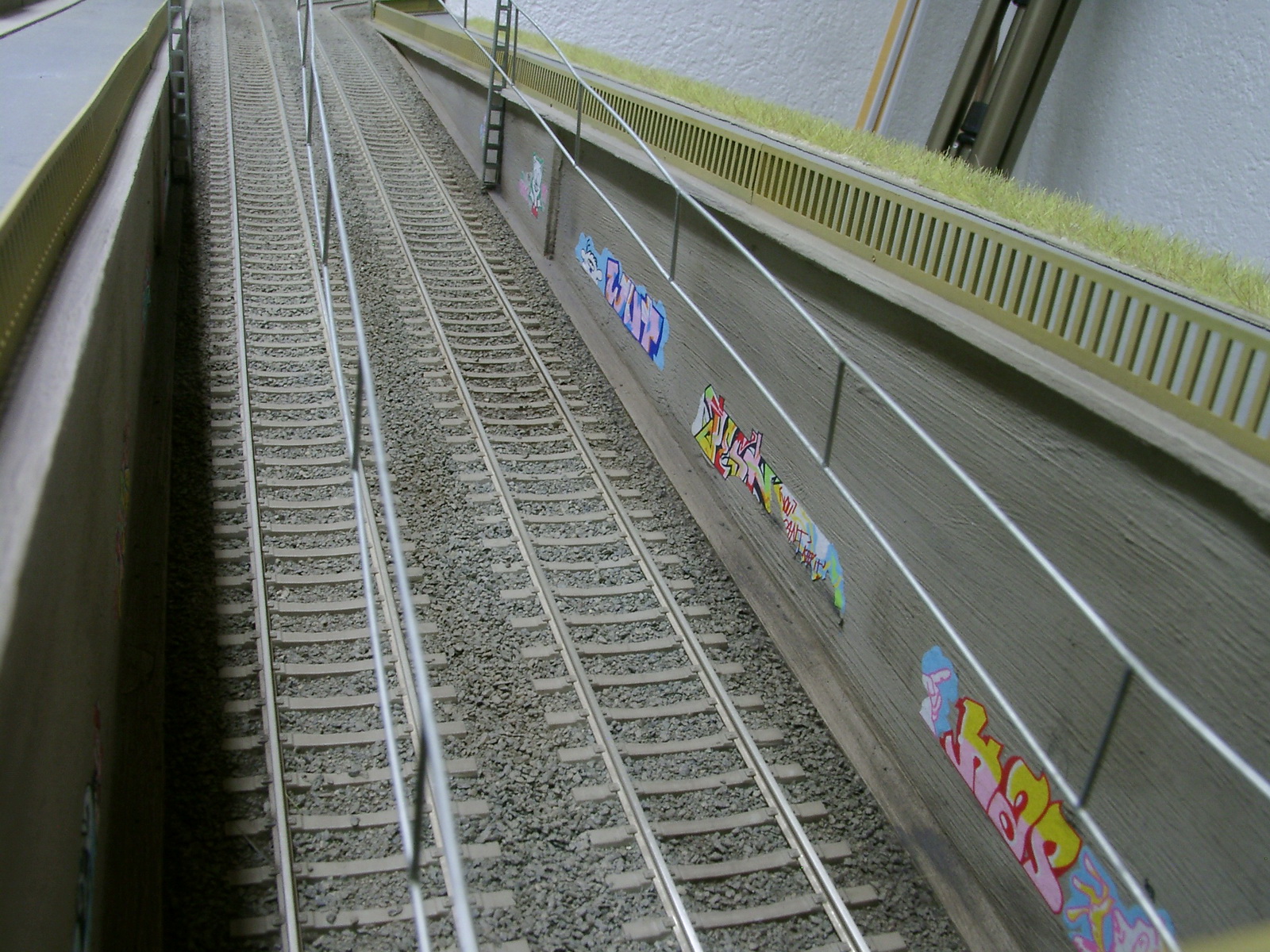 Állomásokon és nyílt vonalon is megfigyelhető, hogy a vágányok mellett vagy között beton kábelcsatornák cikáznak, ezekben régen például vonóvezetékek, manapság inkább elektromos kábelek vannak fektetve. Az Auhagen 41620 és 41616 cikkszámon is kínál ilyet H0-ás méretben. Bonn állomáson ilyeneket ragasztottam le.