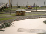 Pár képen feltűnt már a felüljáró a háttérben, időközben ez is formálódott. Pont azért volt fontos betenni a fordítót a helyére, hogy az oda vezető vágányt is le tudjam fektetni, ugyanis ennek pozíciójától függött a még hiányzó lábsor helye. Most, hogy a vágány is a helyére került, lehetett tovább csinosítani. Viszont ha már helyére került a vágány, elkezdtem a váltókörzet melletti rész kiépítését is, ide került vissza egy szintén régi elem, a váltóőrház.