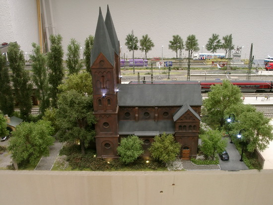 Megterveztem a templomkertet. Az ajtókhoz vezető járdák vonalát berajzoltam. Kölnben múltkor felfigyeltem a dóm előtti felújított tér díszkivilágítására, gondoltam, modellben sem néz ki rosszul pár spotlámpa, ami a falakat világítja meg.